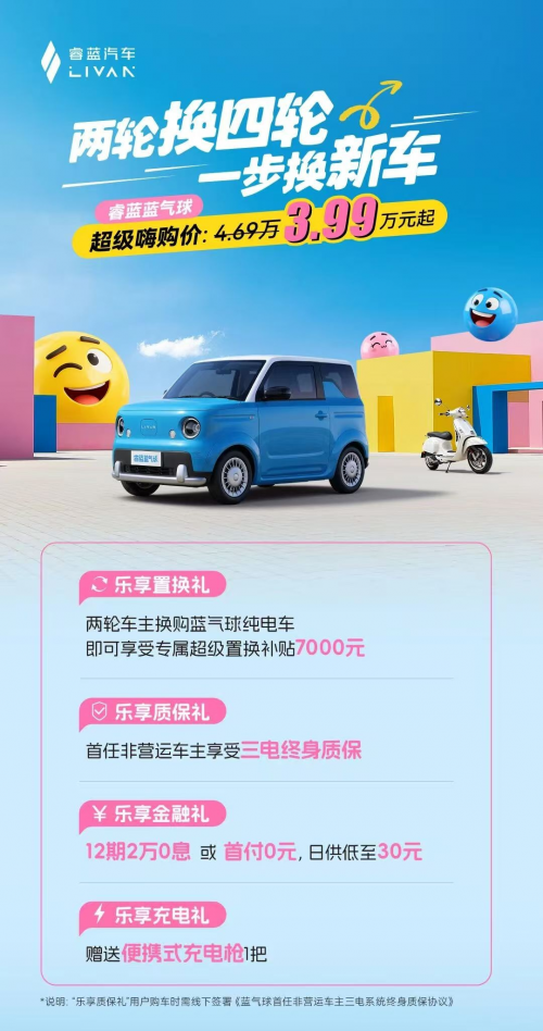 对于二娃家庭来说,一台好开、实用又经济的代步车能极大提升生活幸福感。睿蓝蓝气球3.99万的起售价,搭配专为家庭用户设计的贴心配置,完美解决了带娃出行的各种烦恼,成为很多二孩家庭的出行首选。